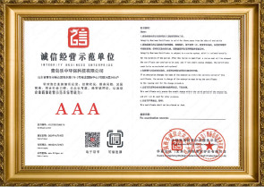 誠(chéng)信經(jīng)營(yíng)示范單位證書