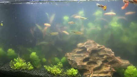 最后說一下老板我是怎樣換水的,由于我的肺活量還可以,所以我是直接用一根橡膠水管,先把水管固定在魚缸口,進水口按在水中,然后跑到出水口去深深的吸一口氣后將出水口塞進下水道,接著就可以去操縱進水口吸水了。當然,有時候橡膠水管中有水,對著管子吸氣是極有可能會被嗆到的。